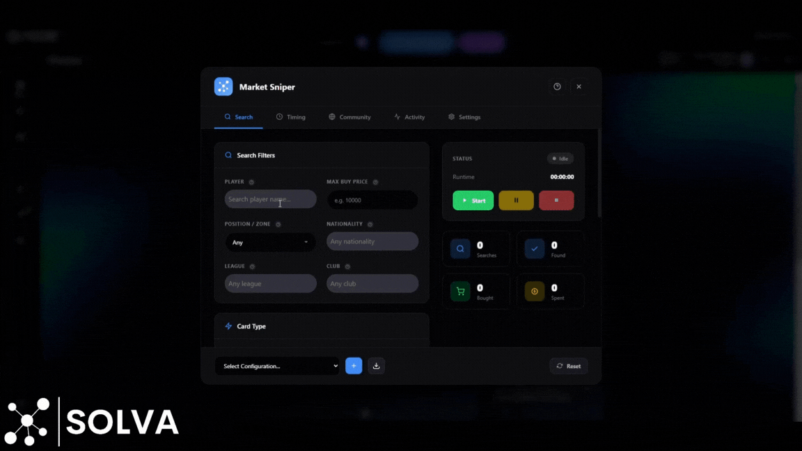 Set your filters once and let Solva automatically search for underpriced players. Find deals before anyone else.