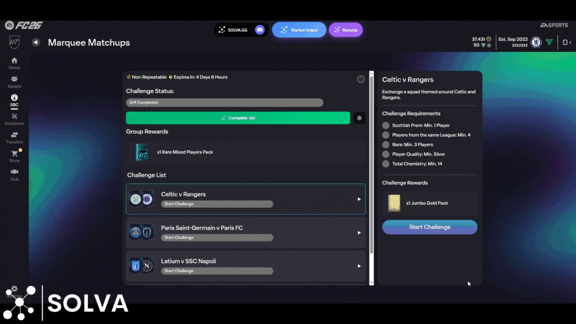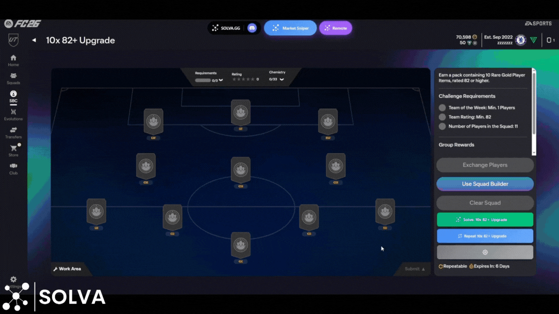 “Solva has completely changed how I do SBCs. One click and it finds the cheapest solution using my club. Massive time saver.”